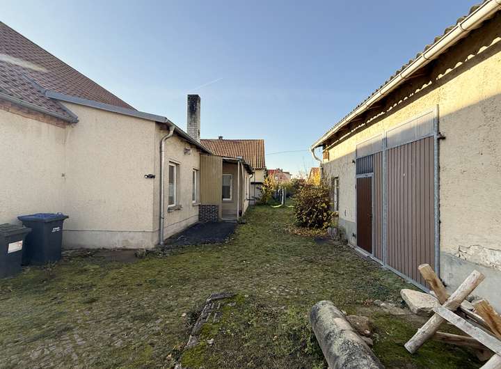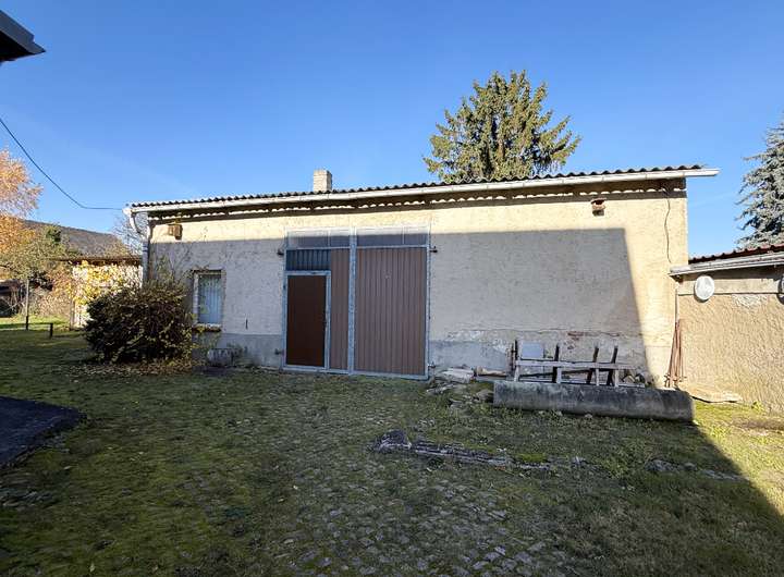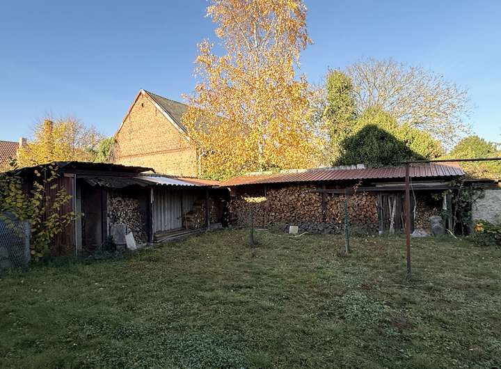 Auf dem weitläufigen Grundstück (ca. 1.519 m²) befinden sich außerdem: eine massive Garage mit integrierter Werkstatt, eine große Scheune und ein Stall, mehrere Holzunterstände – perfekt für Brennholz, Gartengeräte oder kleine Tiere.