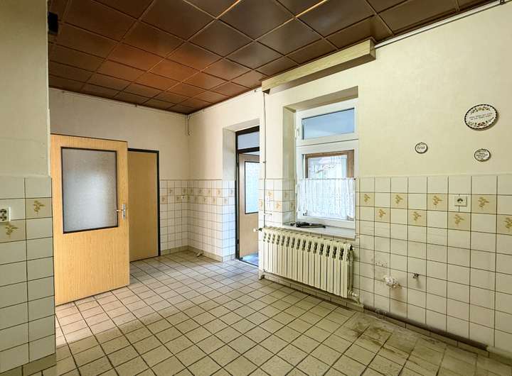 Zum Anwesen gehört ein massiver Anbau mit Waschküche, Heizungsraum und zusätzlichem Vorratsraum. Der dort noch befindliche Kohleofen ist nicht mehr betriebsfähig.