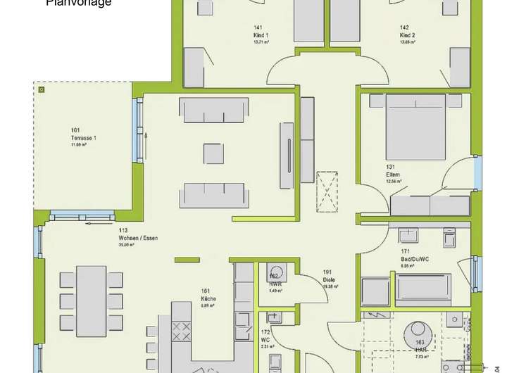 Ein Rückbau in den ursprünglichen Grundriss – mit klassischem Einfamilienhaus, Schlafzimmer und Kinderzimmern – ist jederzeit ohne großen Aufwand möglich.