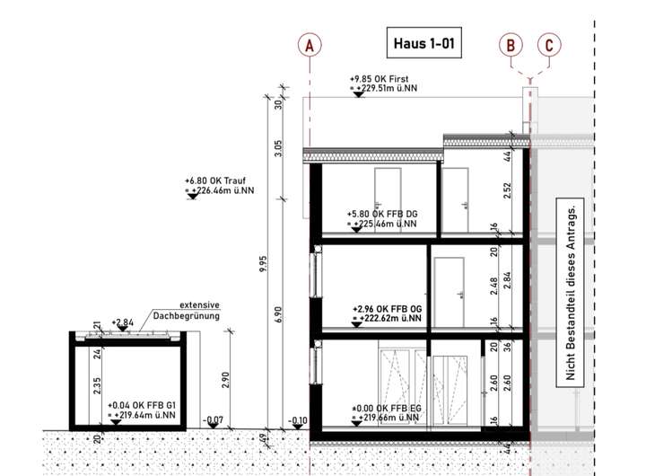 - es entstehen in absolut ruhiger Ortskernlage in zweiter Reihe 7 Doppelhäuser ( 14 Doppelhaushälften)