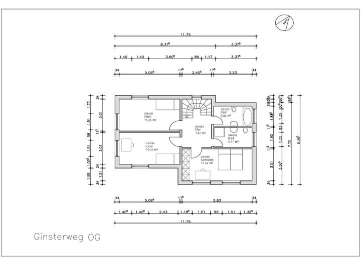Im Obergeschoss erwarten Sie drei komfortable Schlafzimmer – zwei Kinderzimmer mit jeweils ca. 15 m² und ein großzügiges Elternschlafzimmer mit rund 18 m². Zwei geschmackvoll ausgestattete Tageslichtbäder mit moderner Sanitärausstattung sorgen hier für Komfort und Privatsphäre.