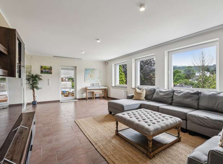 - Großzügiges Wohnzimmer mit Zugang zur traumhaften überdachten und offenen Terrasse