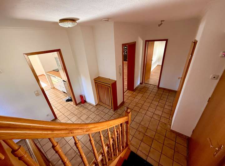 Im Obergeschoss befinden sich drei schöne Zimmer und ein großzügiges Badezimmer mit Dusche und Badewanne.