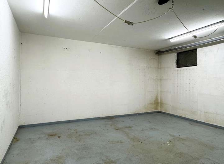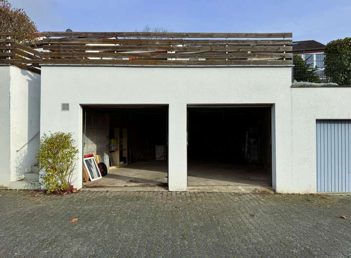 XXL-Garage mit Extra-Lagerraum: Der Garten ist komplett unterkellert und beherbergt darunter eine eigene Tiefgarage mit zwei Toren und Platz für mindestens 4 Autos (ca. 75 m²). Hinzu kommt ein zusätzlicher Lagerraum (ca. 20 m²). Die Abdichtung der Garage wurde 2015 umfangreich erneuert. Weitere Parkmöglichkeiten sind in unmittelbarer Nähe zum Haus vorhanden.