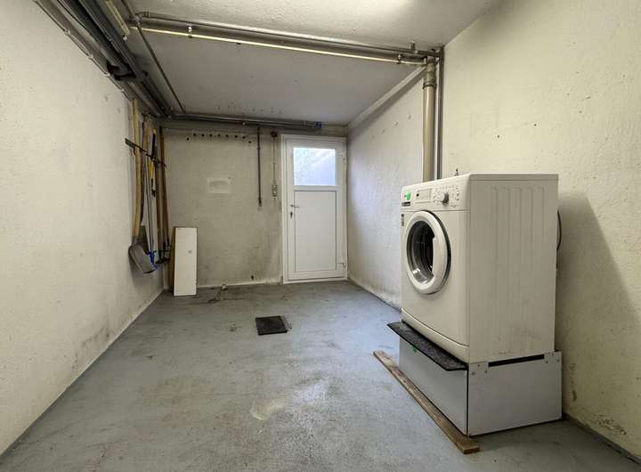Weitere Nutzfläche (ca. 49 m²) steht im Untergeschoss in Form von einem Haustechnikraum, einem Waschraum mit Gartenzugang, einem Vorratsraum sowie einem wohnlichen Hobbyraum (15,7 m²) zur Verfügung.