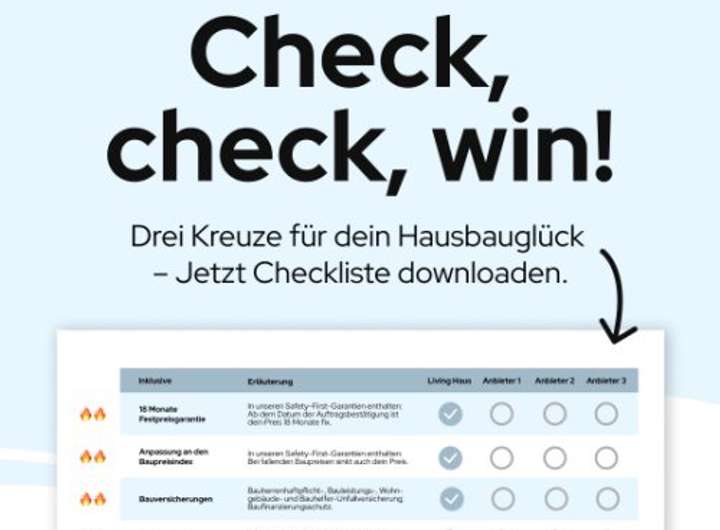 In diesem Angebot enthalten: - 18 Monate Festpreisgarantie! - Baugrundstück - individuell geplante Küche mit Kochinsel, Softclose-Funktion, Induktion, Spülmaschine und vielem mehr! - Plusenergiehaus mit Kühlfunktion - Fenster mit RAL Farben sowie Außenfensterbänke - Photovoltaikanlage mit 6,64 kWp - Stromspeicher VARTA pulse neo 10,2 - Elektroinstallation durch Livinghaus - Sanitärrohinstallation durch Livinghaus - Dämmung und Beplankung durch Livinghaus - Estricharbeiten durch Livinghaus - Vollständiges hochwertiges Finish-Material (Bodenbeläge, Wandbeläge, Innentüren, Sanitärobjekte bis hin zum Handtuchhalter) - Ausbaucoach für 3 Tage auf eigener Baustelle (DiY - Academy) - Bodenplatte - Architektenleistung - Finanzierungsservice mit Sonderkonditionen - Baucockpit App zur Übersicht der nächsten Schritte - DGNB Zertifikat in GOLD