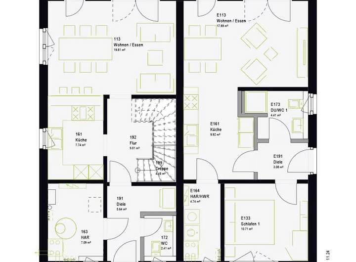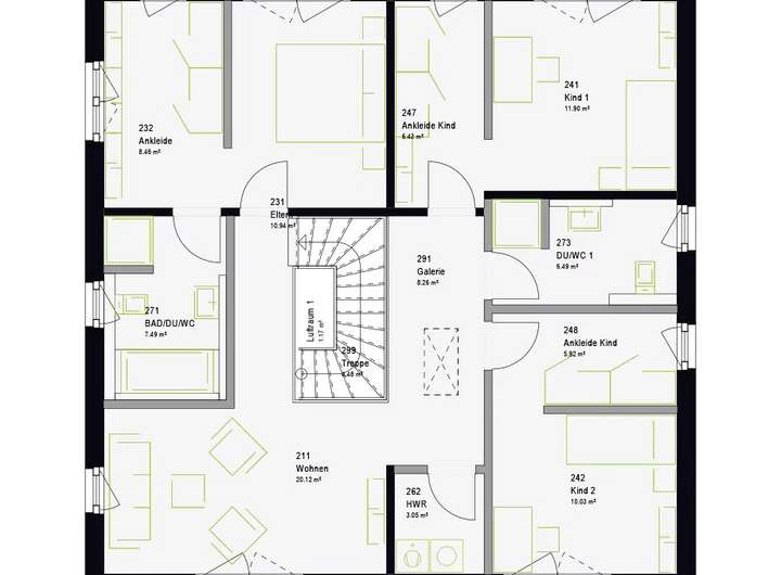 Das Mehrgenerationenhaus FamilyStyle 20.02 W überzeugt mit einem modernen, kubistischen Stil und viel Raum für seine Bewohner. Ein quadratischer Grundriss und ein formschönes Walmdach sind für seinen Charakter kennzeichnend. Großzügige Räume auf einer gesamten Nettogrundfläche von 206 m² bieten reichlich Platz für gemeinsames Wohnen und Leben mit individuellen Freiräumen. Im Erdgeschoss eröffnet die raumsparend geschnittene Einliegerwohnung flexible Alternativen passend für jegliche Wohn- und Lebensphasen. Gleichzeitig beeindruckt das Haus mit attraktiven Mehrwertzonen im Obergeschoss: Absolutes Highlight ist das weitläufige Elternschlafzimmer mit exklusiver Anbindung zur Ankleide und zu einem Wohlfühlbad.