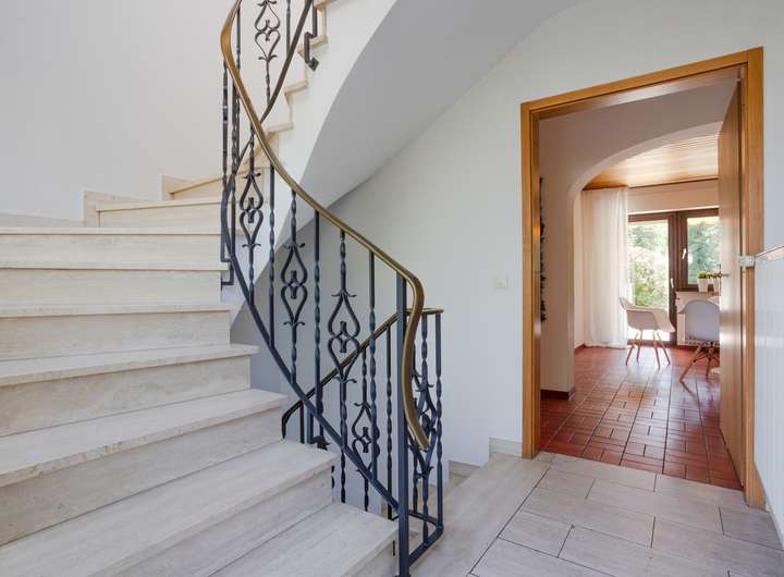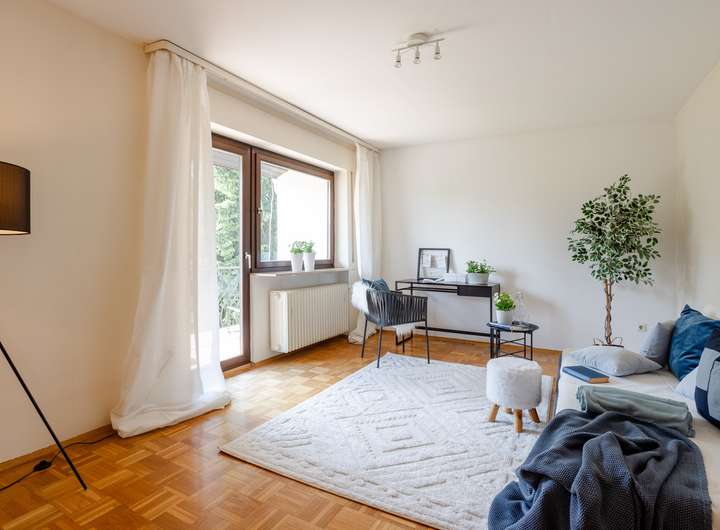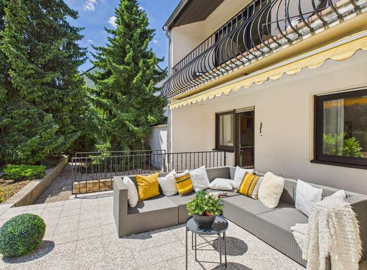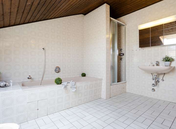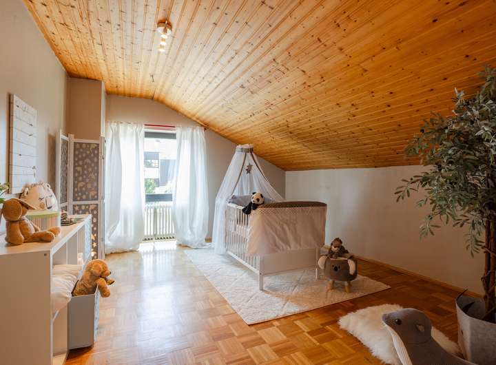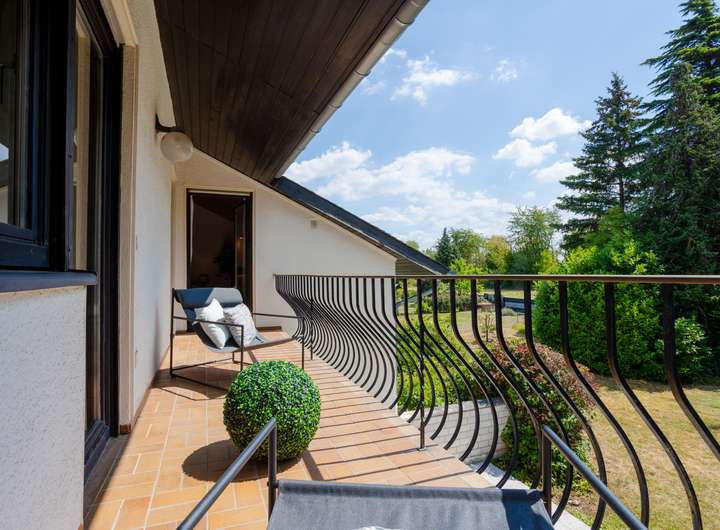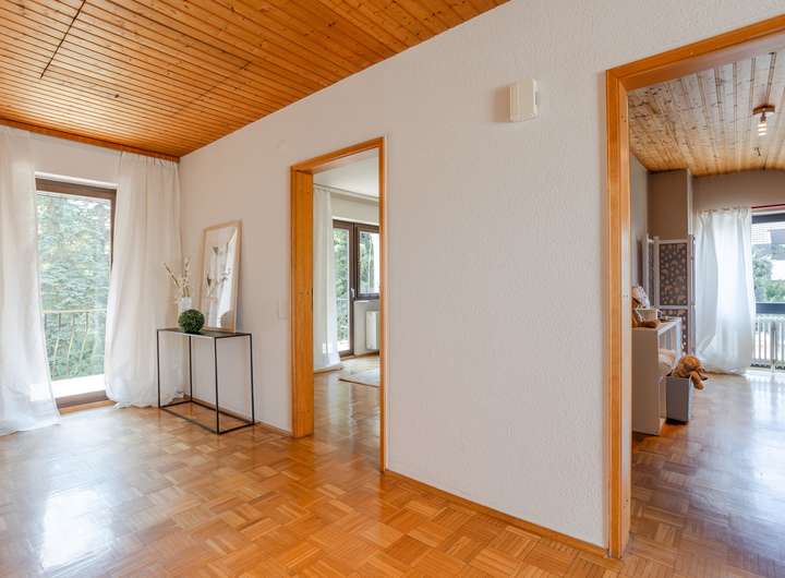Im Obergeschoss des Hauses erwartet Sie eine durchdachte Raumaufteilung mit drei gut geschnittenen Schlafzimmern. Zwei der Zimmer verfügen über direkten Zugang zum Balkon, der herrliche Ausblicke auf das grüne Umfeld bietet. Das großzügige Hauptschlafzimmer punktet zusätzlich mit einer praktischen Abstellkammer. Diese Etage wird durch ein Tageslichtbad mit Wanne und Dusche, ergänzt. Das Untergeschoss bietet zusätzliche Fläche mit zwei geräumigen Kellerräumen – einer davon mit direktem Gartenzugang –, einem Heizungsraum sowie einem vielseitig nutzbaren Hobbyraum. Darüber hinaus befinden sich ein weiteres Badezimmer mit Wanne sowie eine mögliche Küche im Rohbauzustand auf dieser Etage. Das Raumangebot wird durch eine Doppelgarage sowie zwei davorliegende Stellplätze abgerundet.