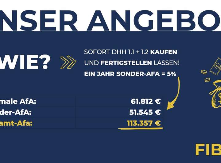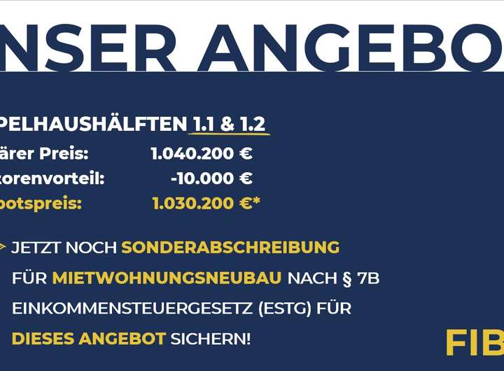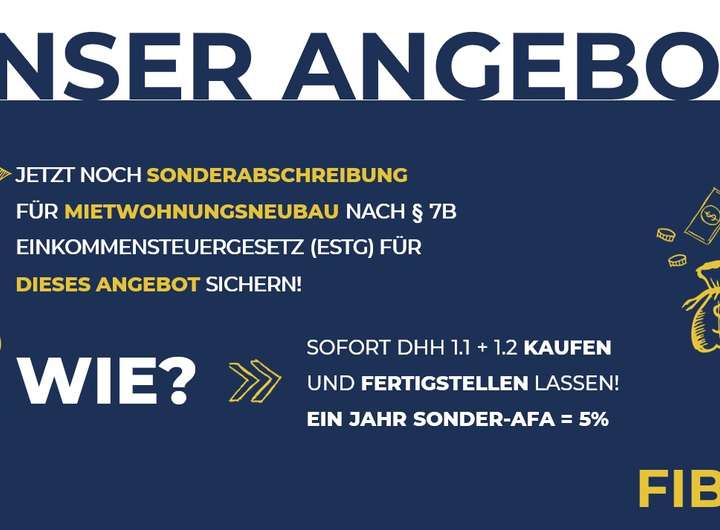 Ein Jahr Sonderabschreibungen in Höhe von 5 % für Mietwohnungsneubau nach § 7b Einkommensteuergesetz zusätzlich geltend machen.