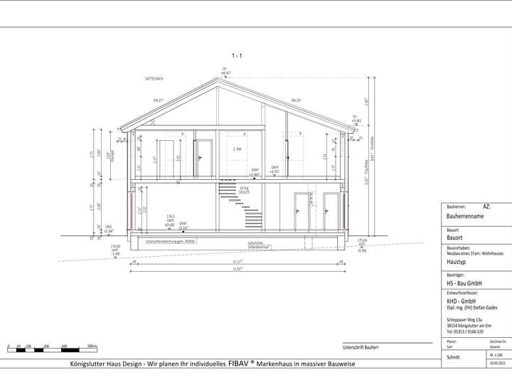 - Versetzte Bauweise mit Gebäudetrennwand aus Beton im EG