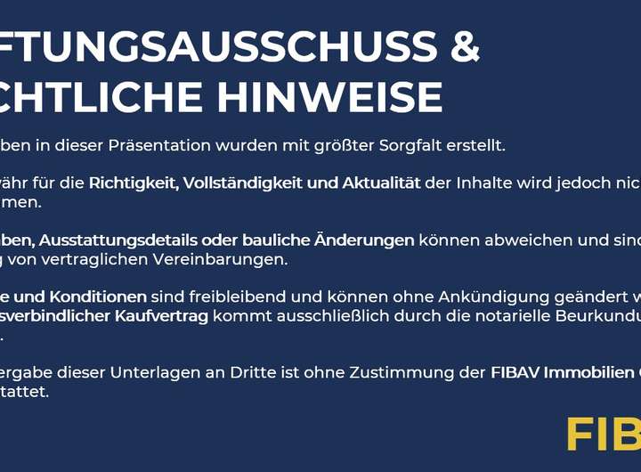 Alle im Exposé genannten Preise, Konditionen und Informationen sind unverbindlich und können jederzeit ohne vorherige Ankündigung geändert werden. Ein rechtsverbindlicher Kaufvertrag kommt erst mit der Unterzeichnung eines notariell beurkundeten Kaufvertrags zustande. Für etwaige Schäden, die durch die Nutzung der Informationen dieses Exposés entstehen, übernehmen wir keine Haftung.