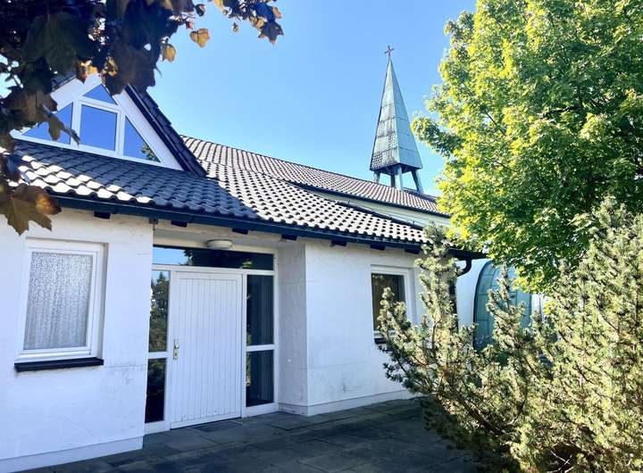 Zum Verkauf steht ein Gebäudekomplex mit außergewöhnlichem Charakter und vielfältigem Entwicklungspotenzial. Bei dem Objekt handelt es sich um eine entwidmete Kirche, die zahlreiche Möglichkeiten für eine neue Nutzung bietet. Durch großzügige Flächen, eine solide Bausubstanz und eine flexible Raumaufteilung eignet sich der Gebäudekomplex ideal für vielfältige Nutzungsmöglichkeiten. Denkbar sind Nutzungen als Wohnraum, Büro- oder Praxisräume, Atelier, Seminar- oder Veranstaltungsort, Kulturzentrum oder Bildungsstätte. Ebenso ist eine gastronomische Nutzung – beispielsweise als Café, Restaurant oder kleiner Veranstaltungsbetrieb – möglich. Eine würdige Nachnutzung ist ausdrücklich gewünscht. Das Objekt befindet sich auf einem Grundstück von rund 1.435 m². Die Gesamtnutzfläche beträgt etwa 463 m² und verteilt sich auf Erd-, Dach- und Untergeschoss. Errichtet wurde der Gebäudekomplex 1959, der Anbau erfolgte 1991. Im Erdgeschoss befinden sich ein Windfang, Foyer, zwei WC-Anlagen, eine Küche, zwei Abstellräume, ein kleiner Raum, ein großzügiger Saal sowie der Hauptraum mit Empore. Das Dachgeschoss bietet einen Vorraum und einen Gruppenraum und zusätzlichen Stauraum. Das teilweise unterkellerte Untergeschoss verfügt über einen separaten Windfang, Flure, weitere WC-Anlagen inklusive Behinderten-WC, eine zusätzliche Küche, Heizungs- und Technikräume, Abstellbereiche sowie einen weiteren großen Raum mit Zugang ins Freie.