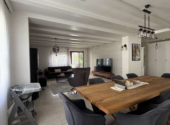Zum 01.04.2026 steht dieser gepflegte, einstöckige Bungalow mit hochwertiger Innenausstattung zum Verkauf. Auf ca. 151 m² Wohnfläche erwarten Sie fünf helle Zimmer, zwei moderne Badezimmer sowie ein separates Gäste-WC. Ein Marmorboden verleiht dem Erdgeschoss ein elegantes Ambiente.