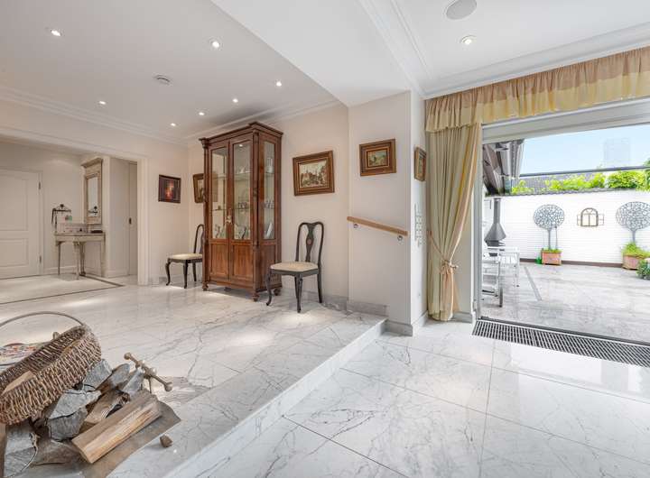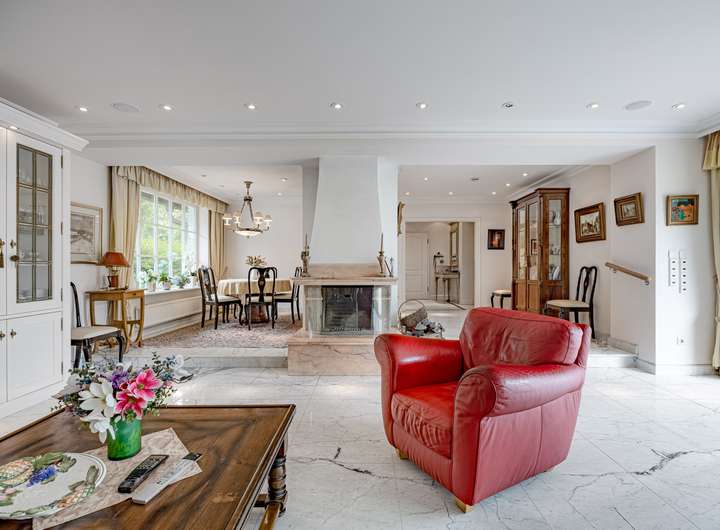 Schon beim Betreten des Hauses spürt man die Qualität und Sorgfalt, mit der hier gebaut und gelebt wurde. Der durchdachte Grundriss und die harmonische Raumaufteilung bieten Platz für Familie, Gäste und individuelle Rückzugsorte. Edle Materialien wie Granit und Marmor verleihen dem Interieur eine zeitlose Eleganz – dezent, aber wirkungsvoll inszeniert.