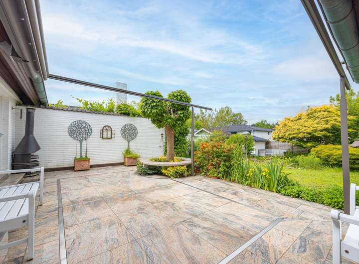 Ein wahres Highlight ist der liebevoll angelegte Garten, der die Villa auf besonders harmonische Weise einrahmt. Eine elektrische Markise (2017) spendet an warmen Tagen angenehmen Schatten, während eine integrierte HiFi-Außenanlage sommerliche Klänge in den Garten trägt – perfekt für unvergessliche Abende mit Freunden und Familie. Ergänzt wird der Außenbereich durch ein stilvolles Glashaus, das als Pflanzenhaus, kreativer Rückzugsort oder einfach als Ruhepol im Alltag dient.
