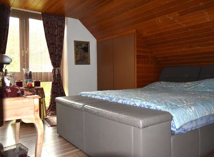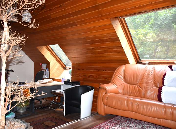 Das Dachgeschoss bietet ein Elternschlafzimmer mit eigenem Bad, zwei Kinderzimmer, ein Büro und ein Gästezimmer – ideal für Familien oder Menschen, die Arbeiten und Wohnen unter einem Dach vereinen möchten. Der Spitzboden eröffnet zusätzliche Gestaltungsmöglichkeiten – ob als Hobbyraum, Atelier oder Stauraum.