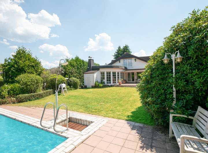 Dieses charmante Einfamilienhaus im klassischen Landhausstil überzeugt durch seine großzügige Aufteilung, ein weitläufiges Grundstück und zahlreiche Annehmlichkeiten wie Außenpool, Poolhaus und sonnige Terrassenflächen.