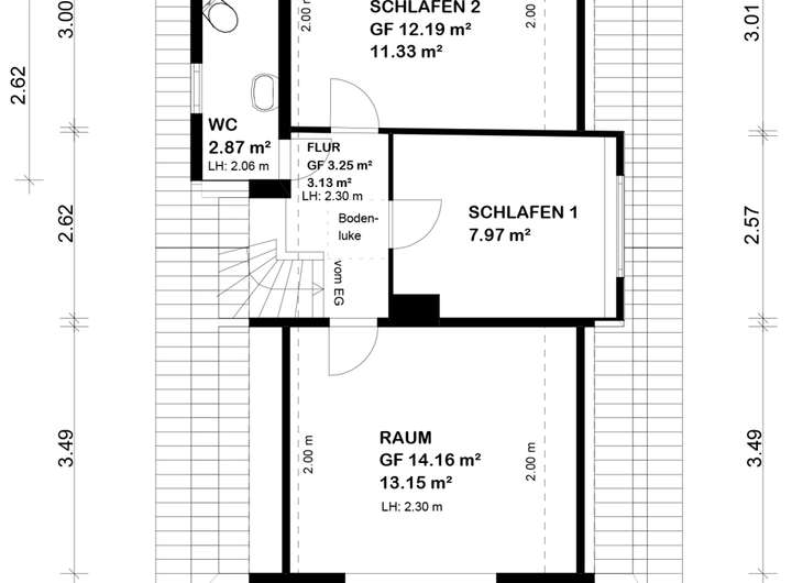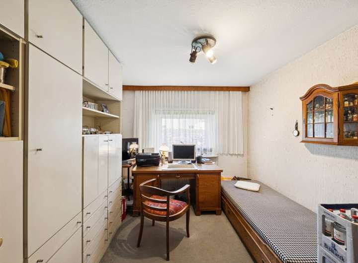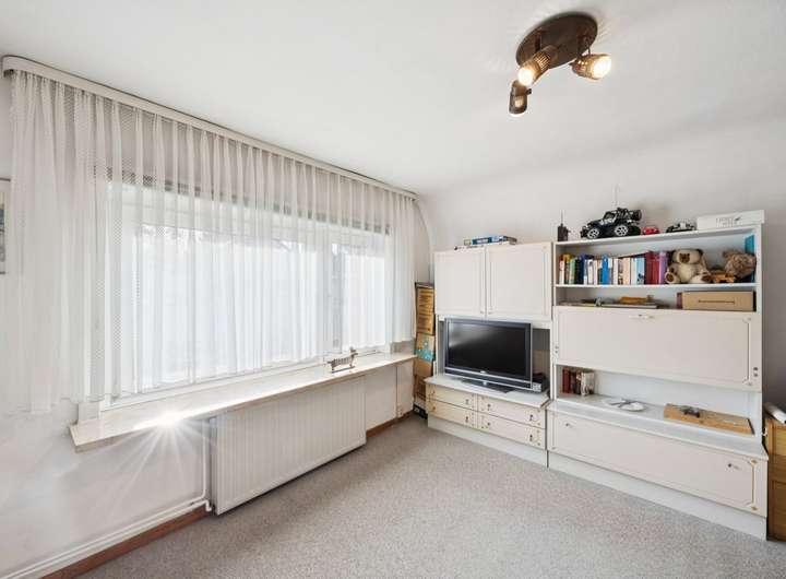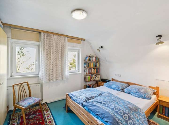 Das Obergeschoss verfügt über drei Schlafzimmer und ein separates WC, wodurch eine klare Trennung zwischen Wohn- und Schlafbereich entsteht. Der Vollkeller bietet zusätzliche Nutzfläche und vielseitige Abstellmöglichkeiten.