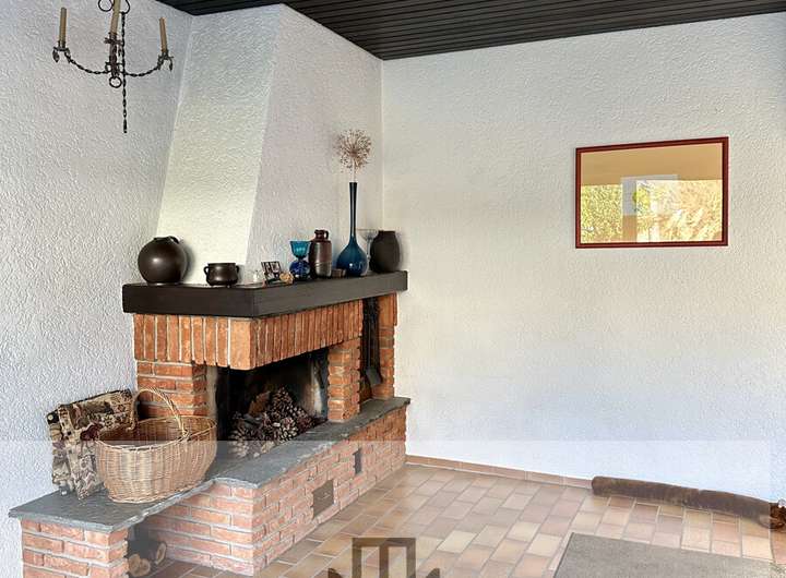 Ein besonderes Highlight ist das angrenzende Kaminzimmer, das mit seinem behaglichen Ambiente zum Entspannen und Wohlfühlen einlädt – ideal für gemütliche Abende im Winter oder als stilvoller Rückzugsort.