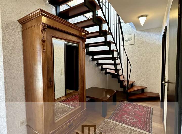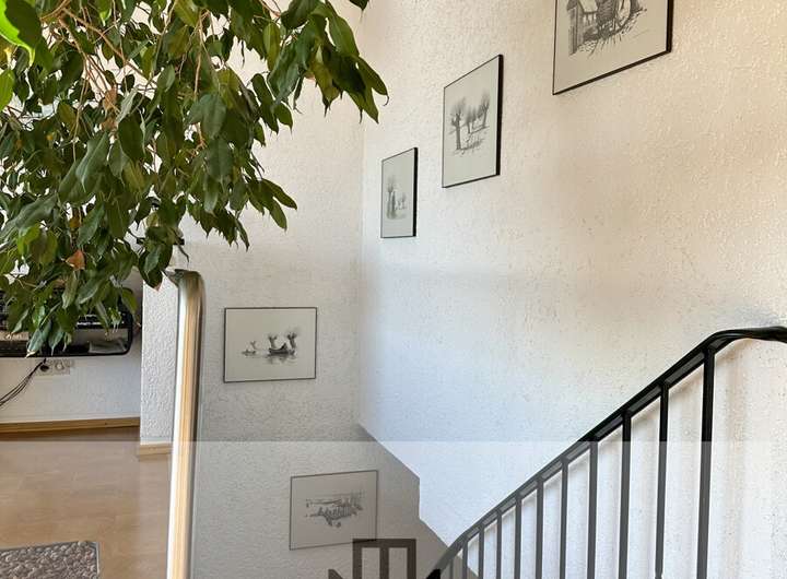 Die Loggia/Balkon bieten ideale Plätze, um die Aussicht und die Ruhe der Umgebung zu genießen. Der gepflegte Garten mit direktem Zugang von der Garage rundet das stimmige Gesamtbild ab.