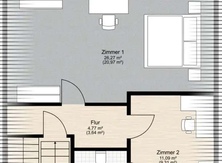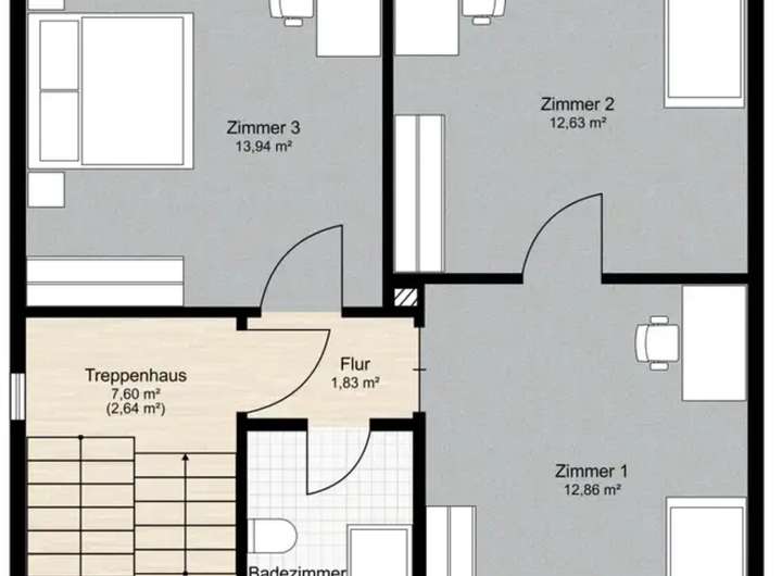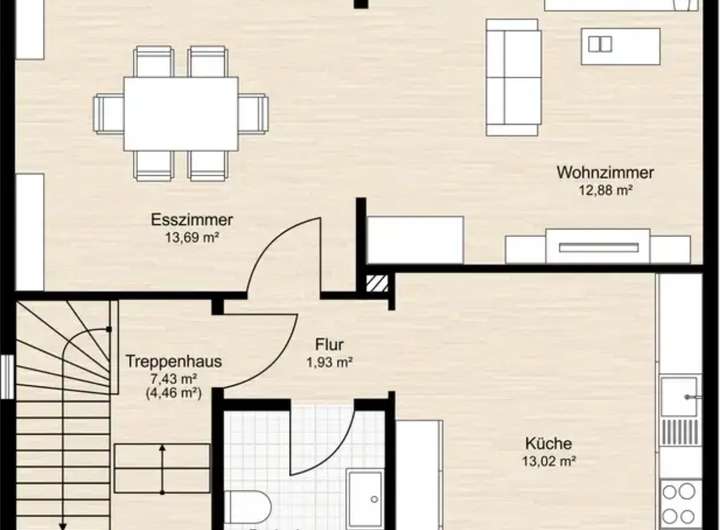 Das Gebäude ist in drei separate Wohneinheiten aufgeteilt und verfügt über ein eigenes, abgeschlossenes Treppenhaus, wodurch es sich ideal zur Vermietung oder als Mehrgenerationenhaus eignet.