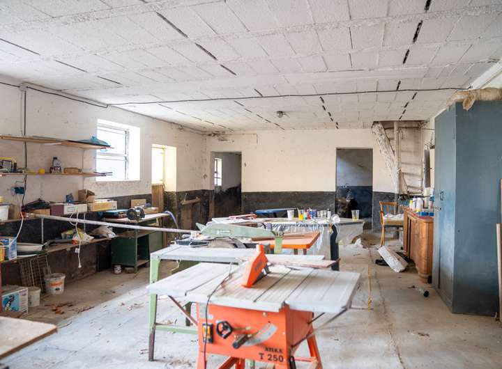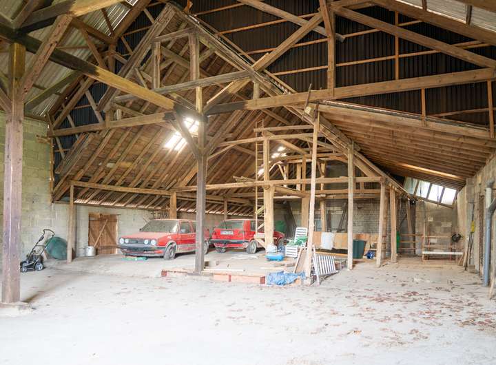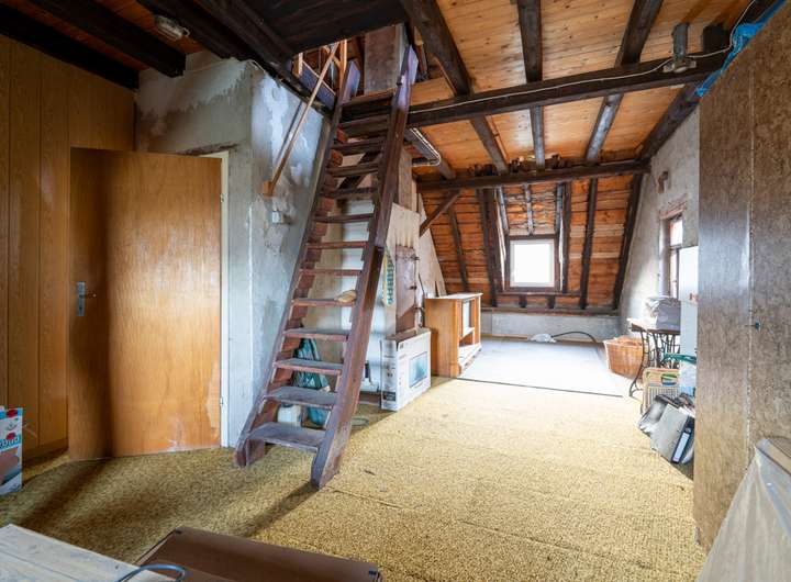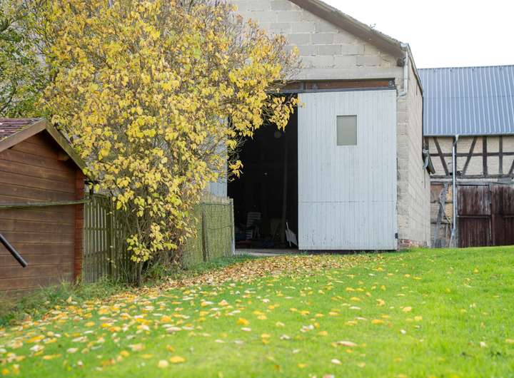 Dank der großzügigen Scheune eröffnen sich nahezu unbegrenzte Möglichkeiten. Ob als Werkstatt, Lagerfläche, Atelier oder Garage. Das Obergeschoss der Scheune ist von hinten ebenerdig befahrbar und kann als große Halle genutzt werden.