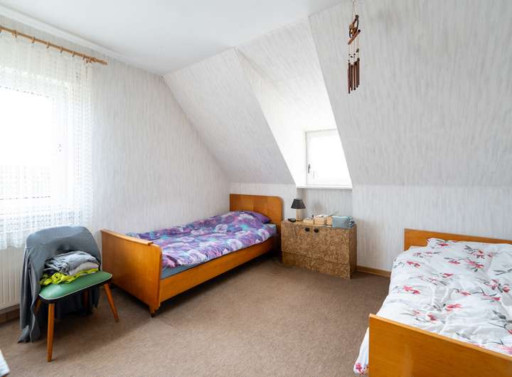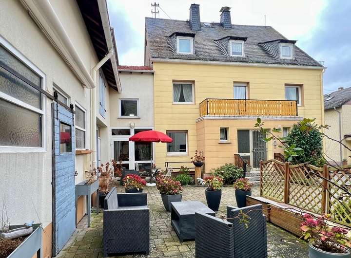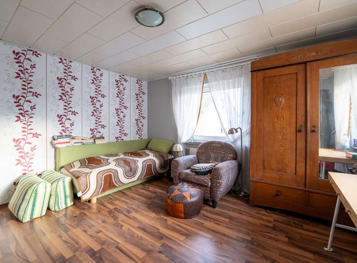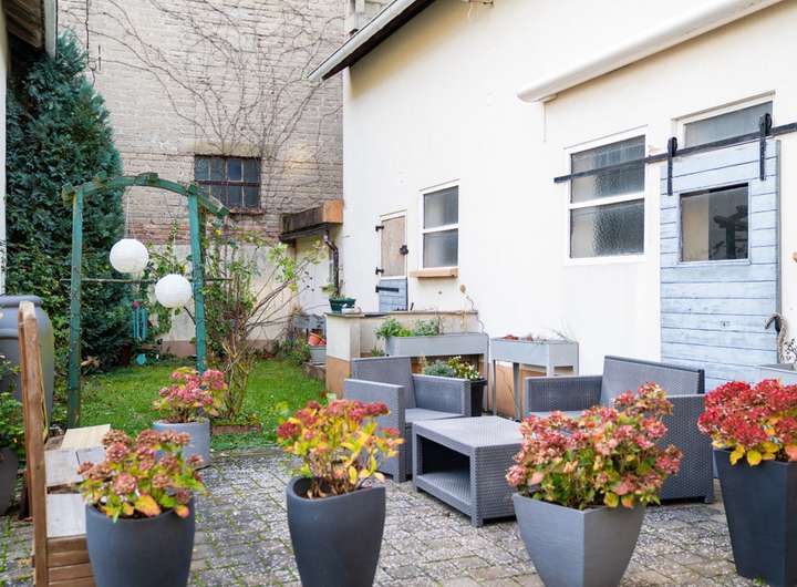 Das Wohnhaus erstreckt sich über drei Etagen plus Keller und ist ideal für Familien, die Wert auf Individualität und Raum legen. Ein großer Raum mit separater Eingangstür vom Hof aus kann als Party- oder Hobbyraum oder auch für Freiberufler als Yoga- oder Seminarraum dienen.