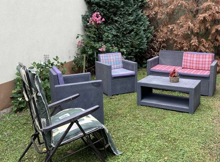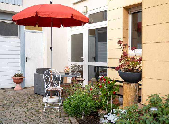 Schon beim Betreten des Innenhofs spürt man den besonderen Charme dieses Anwesens. Der idyllische , von den Gebäuden umrahmte Hof lädt dazu ein, sonnige Stunden zu genießen. Hier frühstückt man im Sommer im Freien, feiert Feste mit Freunden oder lässt den Abend unter freiem Himmel ausklingen – kurz: ein Platz an dem man einfach gerne ist.