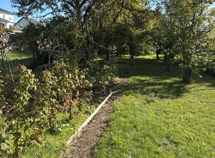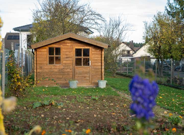 Hinter der Scheune, ein paar Schritte entfernt, gehört ein 400 m² großer Garten mit Gartenhaus zum Anwesen. Dieser Nutzgarten bietet Platz für Gartenfreunde, Selbstversorger oder einfach alle, die das Leben im Grünen lieben. Ob Gemüsebeete, Blumenparadies oder Rückzugsort mit Hängematte – hier findet jeder seinen Lieblingsplatz.