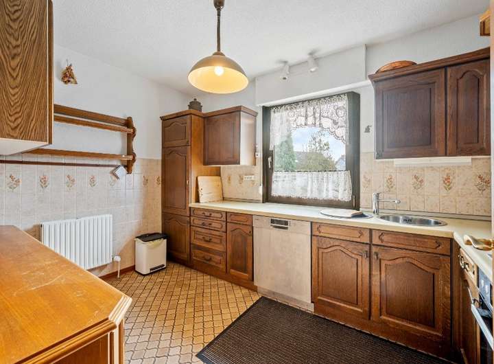 Die separate Küche schließt sich an den Essbereich an und bietet viel Raum für eine großzügige Einbauküche.