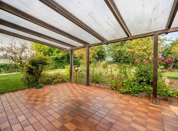 Auf der großen überdachten Terrasse kann man die Sonne genießen und beim fröhlichen Beisammensein laue Sommerabende in entspannter Atmosphäre ausklingen lassen.