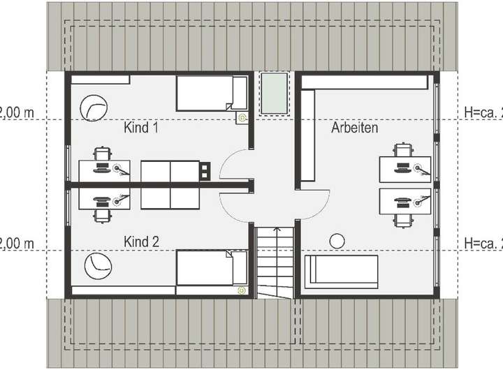 - Erdgeschoß und Dachgeschoß als Holzrahmenkonstruktion in Fertigbauweise