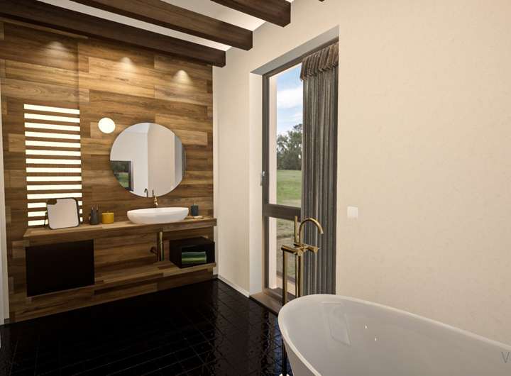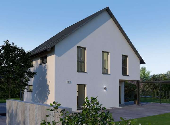 Die Fassade des Design 27 besticht durch einen architektonisch eindrucksvollen und zugleich durchdachten Vorsprung im vorderen Bereich. Im hinteren Bereich befindet sich eine überdachte Aussparung, die beispielsweise als Terrasse dienen kann. Der Wohn-Ess-Kochbereich ist offen und lichtdurchflutet. Von hier führen gleich zwei Türen nach draußen. Komplettiert wird das Raumangebot im Erdgeschoss durch einen Hauswirtschaftsraum sowie durch ein Gäste-WC. Im ersten Obergeschoss beträgt die Stockhöhe zwei Meter, was das Stellen von Schränken problemlos möglich macht. Hier befinden sich drei große Zimmer, ein Ankleideraum sowie ein Bad. Highlight dieser Etage ist sicherlich der offene Galerie-Bereich, von wo eine Treppe ins Dachgeschoss führt. Hier wird nicht nur die Galerie fortgesetzt, es befindet sich auch noch ein weiteres, knapp 24 m² großes Zimmer auf der Ebene - für verschiedenste Nutzungsmöglichkeiten.
