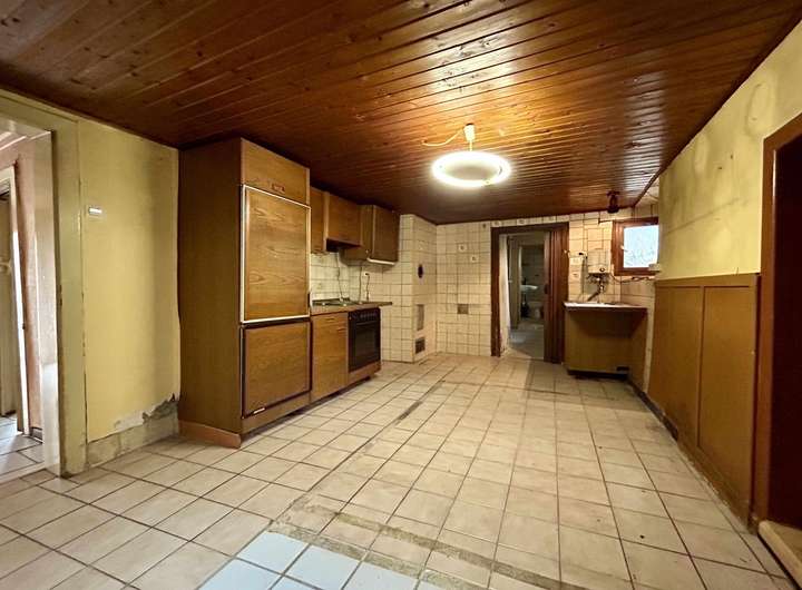 Die Immobilie befindet sich in einem stark sanierungsbedürftigen Zustand, sowohl im Erdgeschoss als auch in Teilen des Obergeschosses, und wartet darauf, wieder zu neuem Leben erweckt zu werden.