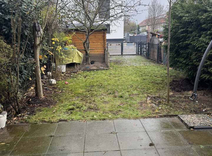 Das Grundstück hat hinter dem Haus noch einen kleinen Gartenbereich wo ein kleines Gartenhaus steht.