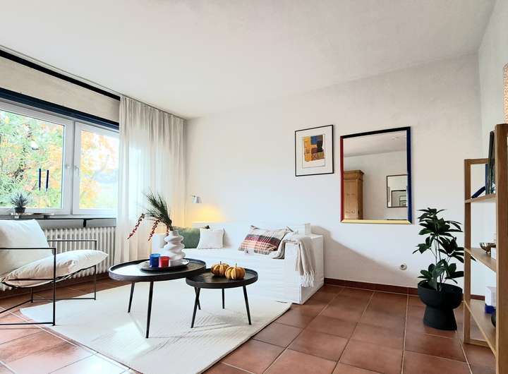 - Wohnzimmer mit Zugang zum sonnigen Balkon