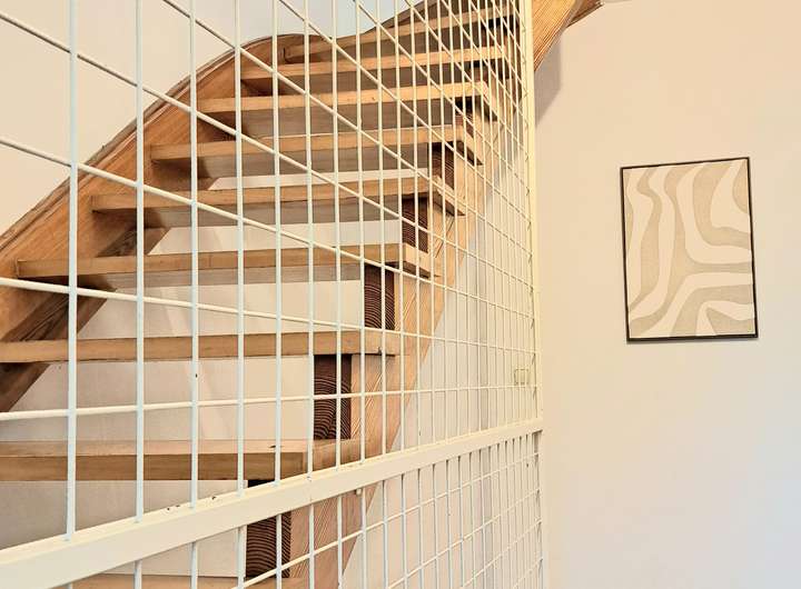 Direkt vom Hauseingang betreten Sie das Treppenhaus, das alle Ebenen des Hauses – Keller, Erdgeschoss, Obergeschoss und Dachgeschoss – komfortabel miteinander verbindet.