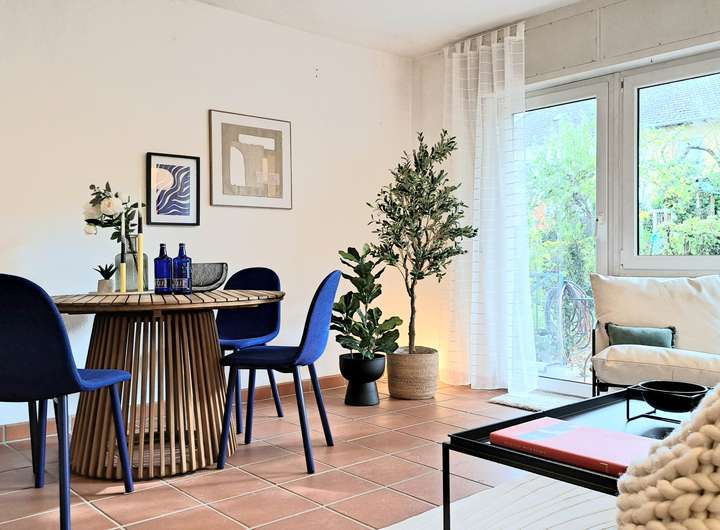 - Wohn- und Esszimmer mit direktem Zugang zur Terrasse und in den Garten