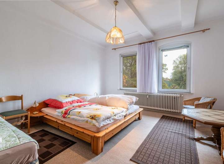 Im Anbau des Haupthaus befinden sich zwei voneinander getrennte Wohneinheiten, die jeweils über eigene Zugänge verfügen. Dadurch eignet sich das Objekt ideal für Mehrgenerationenwohnen, Vermietung oder Wohnen und Arbeiten unter einem Dach. Das zum Teil ausgebaute Dachgeschoss bietet zusätzliches Ausbaupotenzial für weiteren Wohnraum.