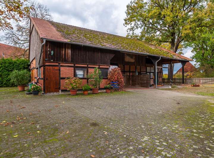Die große Scheune und der ehemalige Stallbereich befinden sich in gutem Zustand und ermöglichen vielfältige Nutzungen – z. B. Tierhaltung, Unterstellung von Fahrzeugen oder als Werkstattfläche. Auch die Unterbringung von Wohnmobilen ist problemlos möglich.