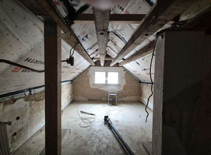- Dach wurde hofseitig neu gedeckt, gedämmt, und das Gebälk wurde verstärkt und neu aufgebaut