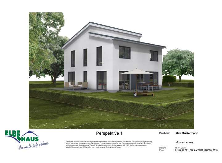 Dieses innovative Elbe-Haus® wird in massiver Bauweise von qualifiziertem Fachpersonal errichtet. Wir planen und projektieren nach Ihren Vorstellungen und Wünschen und somit ist wirklich jedes Haus einzigartig. Beachten Sie bitte, dass das abgebildete Haus lediglich ein Bebauungsbeispiel ist. Das Grundstück kann unter Berücksichtigung der örtlichen Bauvorschriften mit Ihrem Wunschhaus von Elbe-Haus® errichtet werden.