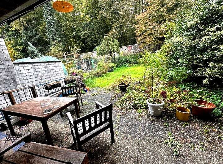 Dieses massiv gebaute Haus befindet sich auf einem real geteilten Grundstück, eingebettet in eine grundsolide und ruhige Wohnumgebung am Waldrand.