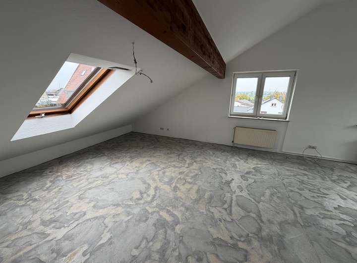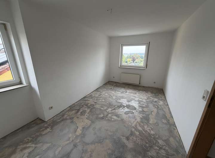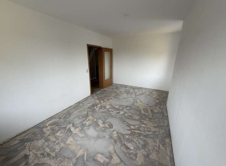 Die beiden (Schlaf-)Zimmer im OG haben einen für einen neuen Bodenbelag vorbereiteten Untergrund (der alte Teppichboden wurde vollständig entfernt).
