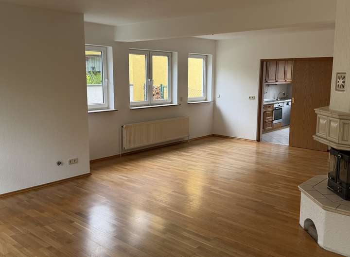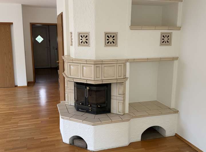 Der Wohn-/Essbereich hat einen frisch aufgearbeiteten Parkettboden sowie einen gemütlichen Kachelofen.