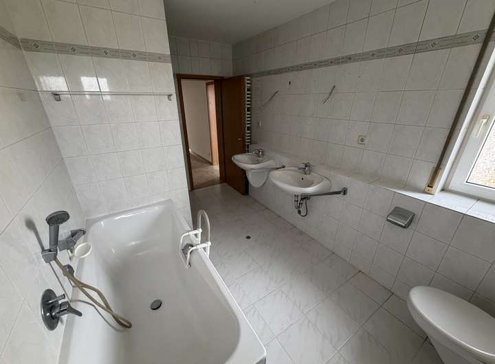 - Das Bad ist großzügig geschnitten, mit 2 Einzelwaschbecken, Badewanne und separater Dusche und Fenster/natürlicher Belüftung.