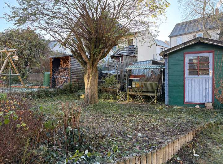 Das Gartenhäuschen (praktisch für Gartengeräte u.ä.) sowie die beiden großen Aluleitern in der Garage und im DG (zum Erreichen der kleinen Giebelkammer) sind ebenfalls im Preis inbegriffen.