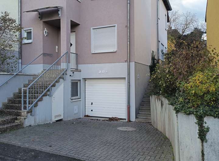 - Der vor der Garage befindliche Stellplatz, auf dem auch zwei PKWs Platz finden.