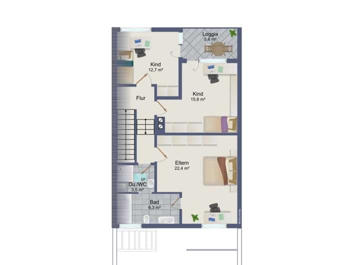 Zudem stehen auf dieser Etage zwei helle Tageslichtbäder zur Verfügung, die entweder separat genutzt oder clever miteinander verbunden werden können. Eines der Bäder punktet mit einem stilvollen Dachfenster, das zusätzliches Licht und eine besondere Atmosphäre schafft.