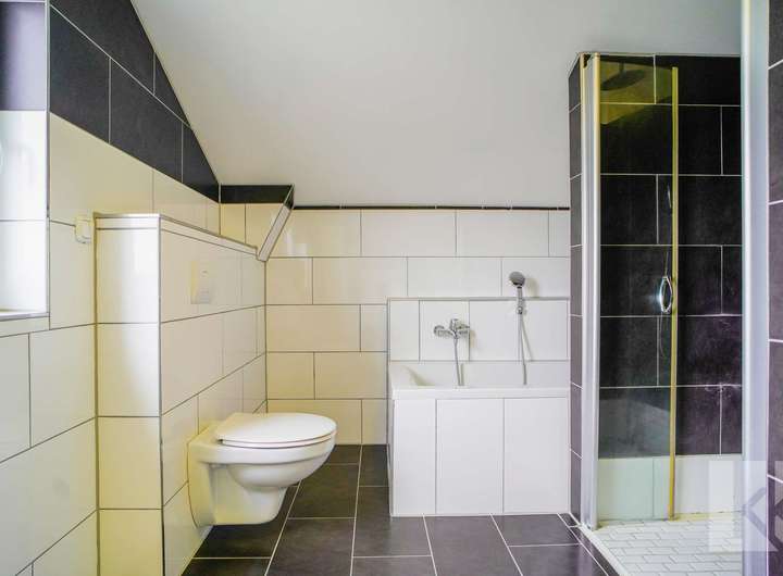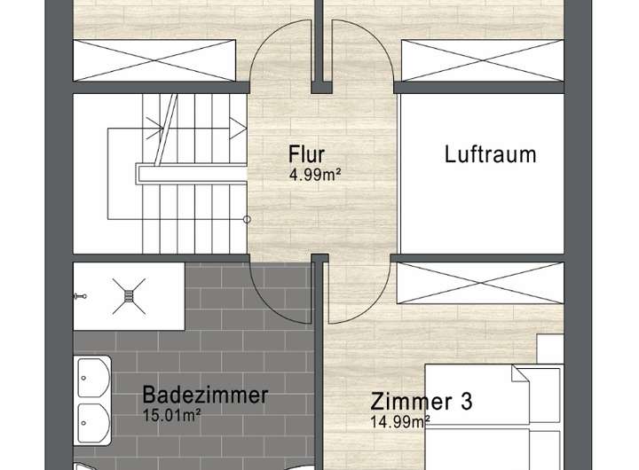 Über eine zentrale Treppe führt der Weg ins erste Obergeschoss. Drei flexibel nutzbare Zimmer eröffnen vielfältige Möglichkeiten – ob als Schlafzimmer, Homeoffice, Hobbyraum oder Rückzugsort für die ganze Familie. Ein großzügiges Badezimmer mit Eckwhirlpool und separater Dusche ergänzt diese Ebene auf praktische Weise.